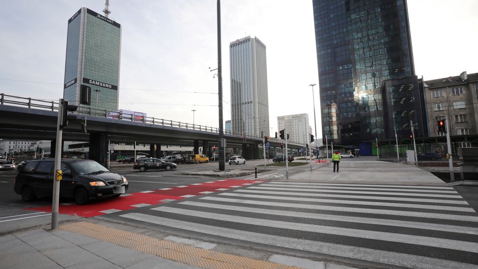Ruch w Alejach Jerozolimskich na jezdni w kierunku ronda Dmowskiego jest utrudniony.