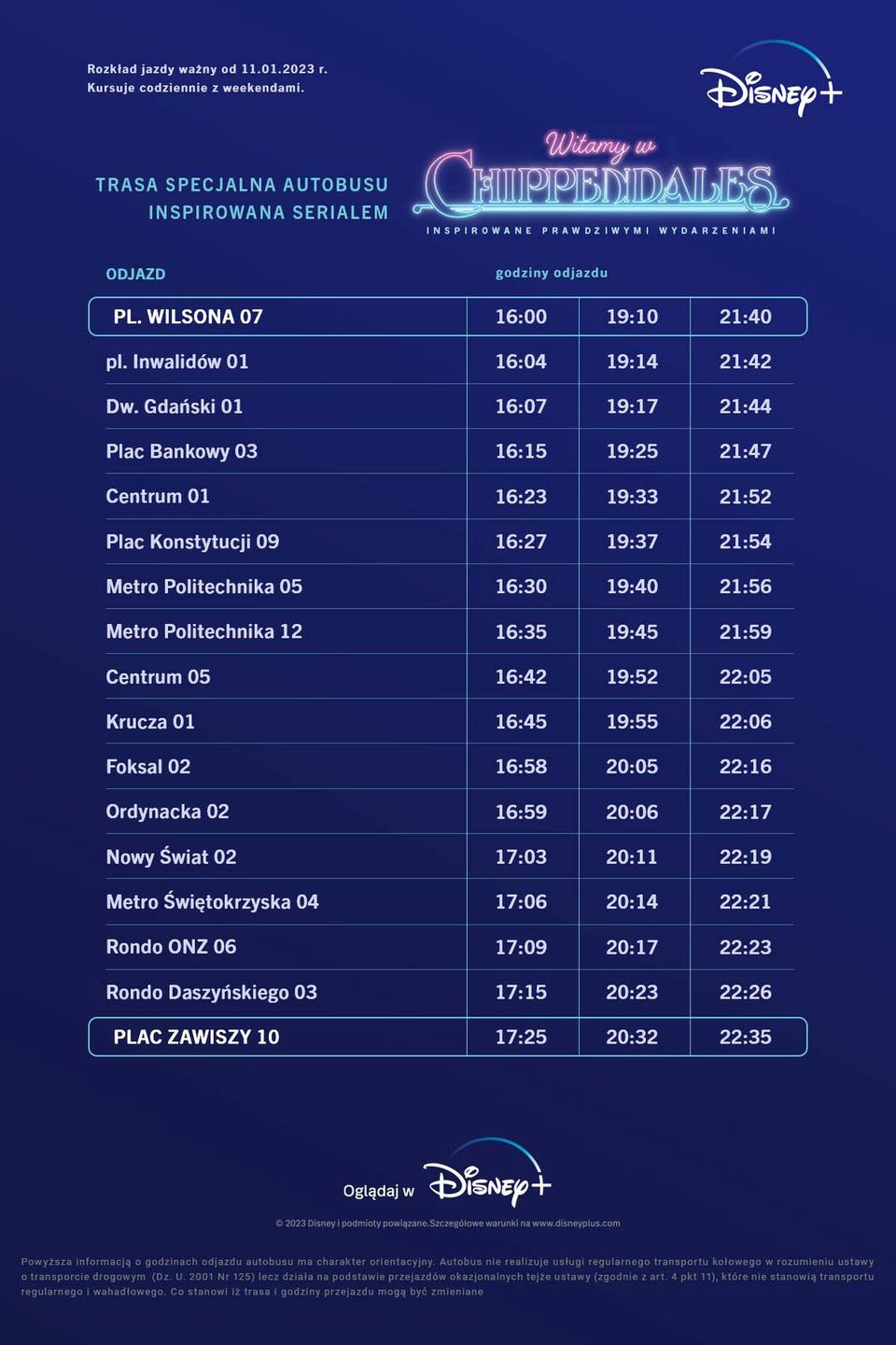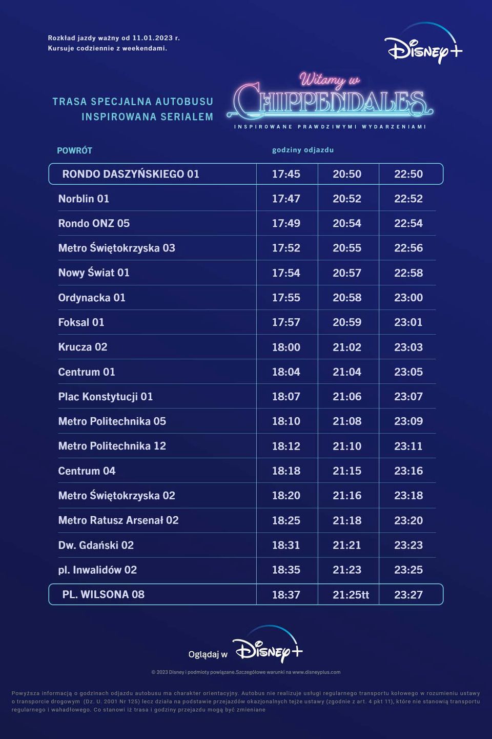 Ramowy rozkład jazdy double-deckera "Witamy w Chippendales"