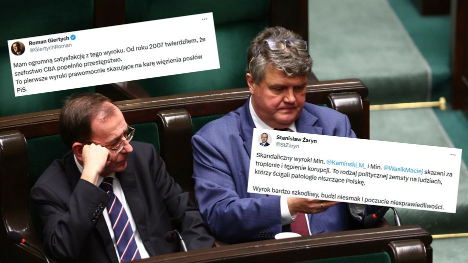 Były szef CBA Mariusz Kamiński i jego zastępca Maciej Wąsik zostali prawomocnie skazani na dwa lata więzienia w związku z tzw. aferą gruntową. W sieci pojawiło się mnóstwo komentarzy. Głosy są podzielone. Przedstawiciele PiS-u piszą o "skandalu", z kolei zwolennicy nowej władzy o "satysfakcji".