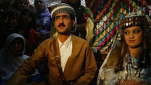 Tradycyjna ceremonia ślubna Kurdów w miejscowości Abril, w północnej części Iraku.