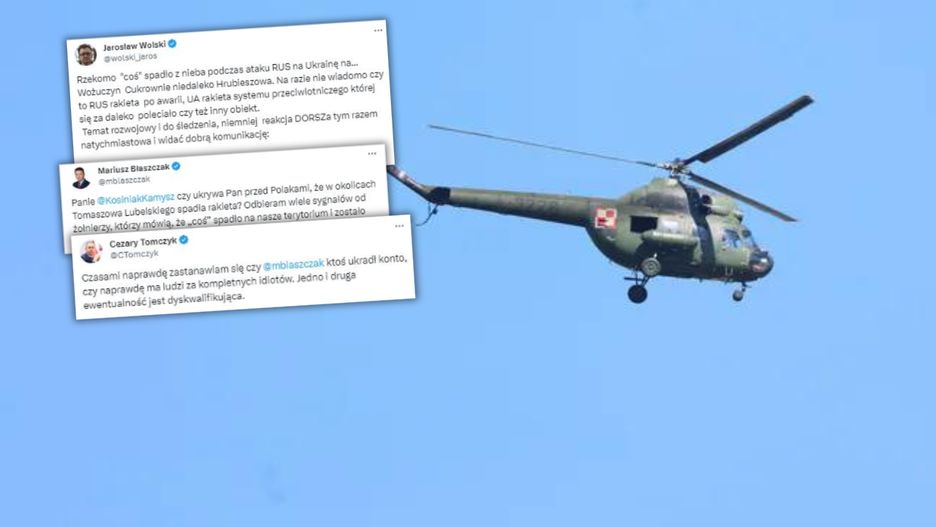 "Panie Kosiniak-Kamysz, czy ukrywa Pan przed Polakami, że w okolicach Tomaszowa Lubelskiego spadła rakieta? Odbieram wiele sygnałów od żołnierzy, którzy mówią, że 'coś' spadło na nasze terytorium i zostało wprowadzone embargo informacyjne. Żądamy wyjaśnień!" - zwrócił się do obecnego ministra obrony Mariusz Błaszczak.