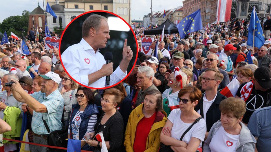 Donald Tusk na wiecu. "Polaryzujące elementy" w wystąpieniu premiera