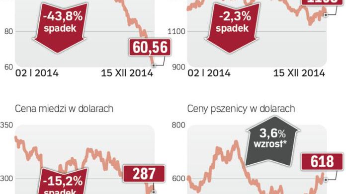 Spadki cen tego surowca - ze 107 dolarów za baryłkę (ropy Brent) na początku roku do ok. 60 dolarów obecnie - zaczęły już niepokoić inwestorów. Obawiają się oni bankructwa Rosji, której budżet opiera się głównie na dochodach z eksportu ropy i gazu. Dodatkowych problemów przysparzają Rosji sankcje nałożone na nią po aneksji Krymu i zaangażowaniu się w działania wojenne na wschodzie Ukrainy.Inwestorzy pamiętają rok 1998, kiedy kryzys w Rosji odczuł cały nasz region.