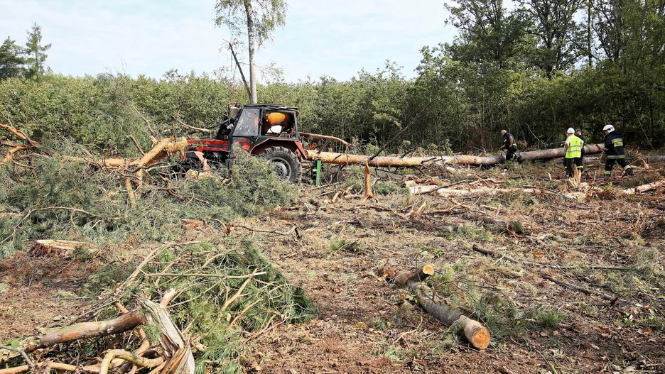 Wielkopolska. Drzewo przygniotło operatora ciągnika podczas wycinki w lesie