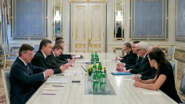 Janukowycz złożył swe oświadczenie w czasie, gdy w jego administracji obecni byli szefowie dyplomacji Polski i Niemiec, Radosław Sikorski i Frank-Walter Steinmeier. Przybyli oni do Kijowa w czwartek wraz z ministrem spraw zagranicznych Francji Laurentem Fabiusem, który później opuścił Ukrainę. Ich nocne rozmowy z Janukowyczem i opozycją trwały ponad dziewięć godzin.