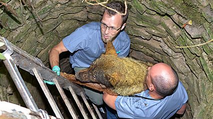 Po podaniu środka nasennego weterynarze wyciągnęli zwierzę i przewieźli do Ośrodka Rehabilitacji Zwierząt Chronionych w Przemyślu.