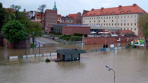 Wisła przelała się przez bulwar na stare miasto