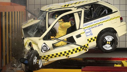 Zderzenie samochodu osobowego jadącego z prędkością ok. 80 km/h, z twardą przeszkodą zaprezentowano podczas konferencji prasowej Ministerstwa Infrastruktury i Krajowej Rady Bezpieczeństwa Ruchu Drogowego, inaugurującej kampanię społeczną „Prędkość zabija. Włącz myślenie”. Pokaz przygotowany został przez PIMOT, we współpracy ze Studenckim Kołem Naukowym SIMR Politechniki Warszawskiej.