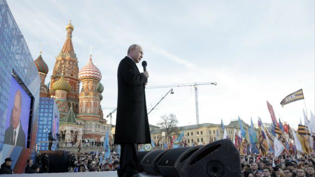 Putin przemawiał podczas wiecu-koncertu na Wasiljewskim Spusku, przed murem Kremla, poświęconego pierwszej rocznicy przyłączenia Krymu do Federacji Rosyjskiej. Zebrało się tam kilkadziesiąt tysięcy osób.