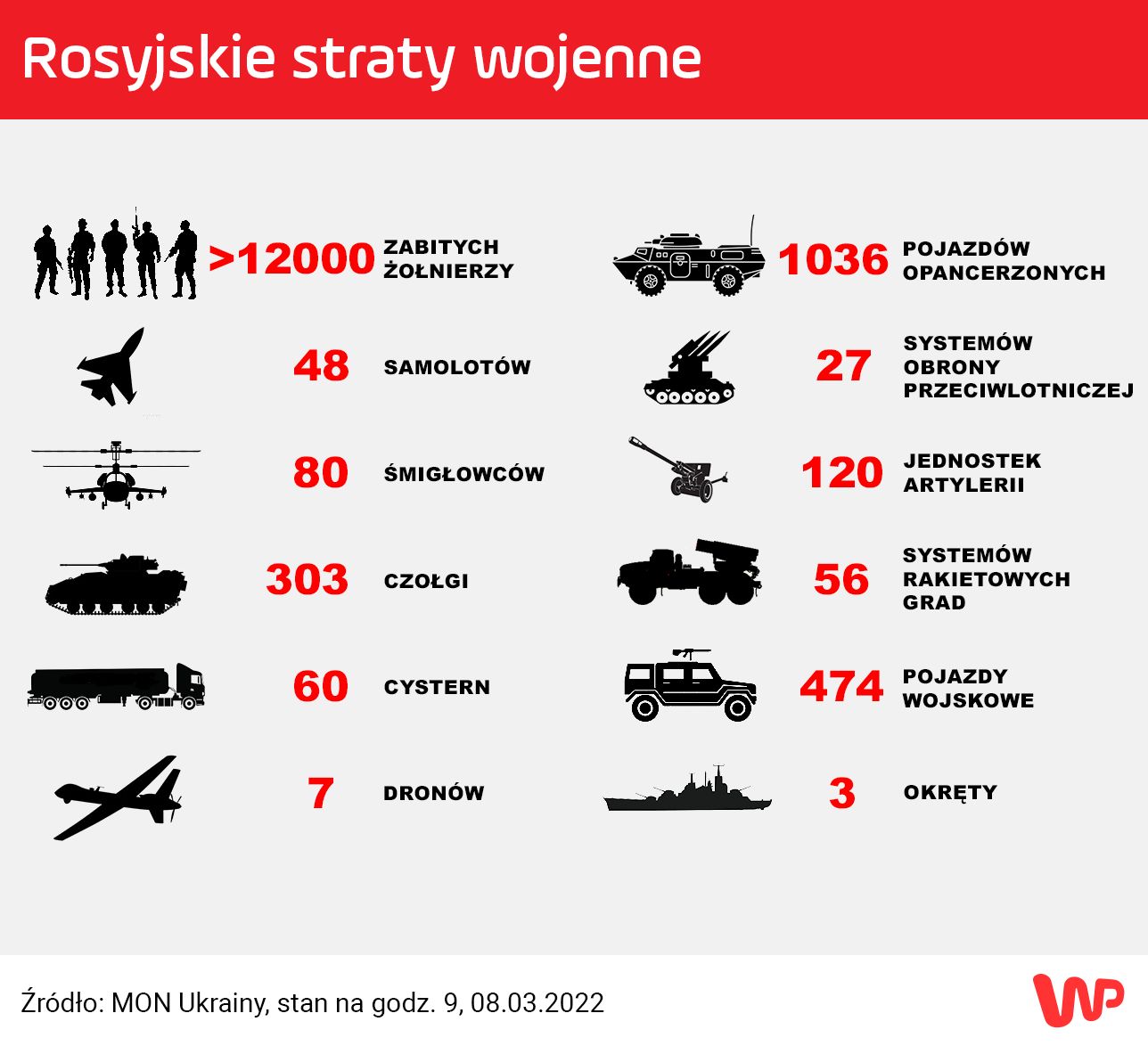 Ukraińska armia podała szacunkowe straty Rosji w prowadzonej wojnie. Według szacunków Kijowa, od początku ataku na Ukrainę zginęło już blisko 12 tys. rosyjskich żołnierzy.