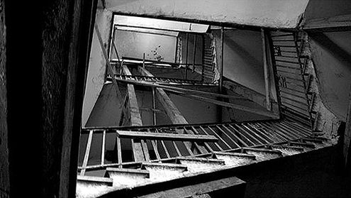 "Klatka schodowa na warszawskiej Pradze. Chyba najbardziej niebezpiecznej ulicy w Polsce. Tuż koło bazaru Różyckiego" SJS