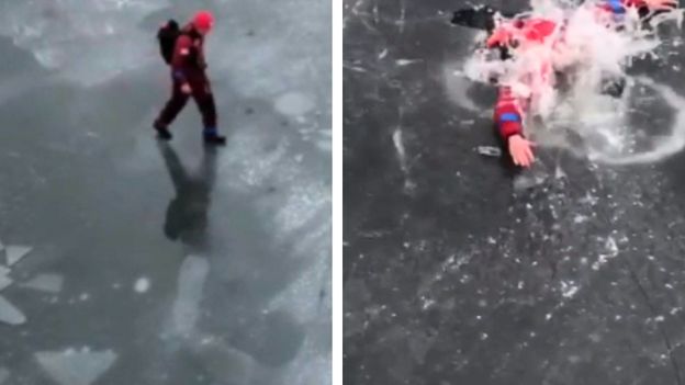 "Spróbujmy najpierw opanować oddech i nie działajmy chaotycznie. Wyciągnijmy ręce jak najdalej na taflę lodu przed nami. Przyjmijmy pozycje jak najbardziej poziomą i kopiąc nogami starajmy się czołgać do przodu" - tłumaczą sposób wydostania się z zamarzniętego zbiornika ratownicy z Ochotniczego Pogotowia Ratunkowego na Mazurach. Podczas zimy zdarza się, że ludzie wchodzą na zamarznięte zbiorniki wodne, ufając, że lód pod nimi ich utrzyma. Nie zawsze jednak każdy ma tyle szczęścia i w ułamku sekundy może dojść do tragedii. Dlatego też na profilu Mazurskie Ochotnicze Pogotowie Ratunkowe na Facebooku pojawiło się nagranie, na którym wyspecjalizowani ratownicy pokazują, jak radzić sobie w ciężkich sytuacjach na lodzie. Na udostępnionym materiale widać mężczyznę, idącego przez zamarznięte jezioro w Mikołajkach. W pewnym momencie lód pod nim się załamuje, a ten wpada do wody. Ratownik stara się utrzymać na wodzie, po czym podpływa do najbliższej pokrywy lodowej. Ta okazuje się być łamliwa, utrudniając tym samym możliwość opuszczenia wody. Dopiero staranne ruchy rękoma do przodu w poszukiwaniu twardego lodu, a także silne wymachy nogami automatycznie zwiększają jego szanse. Na nagraniu mężczyzna wyposażony jest w plecak z ubraniami, stąd też od razu unosi się na wodzie. Dlatego, gdy już decydujemy się na eksplorację zamarzniętych zbiorników, powinniśmy być przygotowani na wszystko. Ratownicy z Mazur apelują, by w takich sytuacjach być z kimś, kto z brzegu będzie nas obserwował, a do tego dobrze zaopatrzyć się jest w plecak z zapiętymi pasami biodrowym i piersiowym, kolce lodowe czy też gwizdek w razie zwrócenia uwagi najbliższego otoczenia. "Gdy już znajdziemy się na tafli, przesuwajmy się po niej, a wstańmy dopiero kiedy będziemy pewni, że lód się ponownie nie załamie" - apeluje Mazurskie Ochotnicze Pogotowie Ratunkowe.
