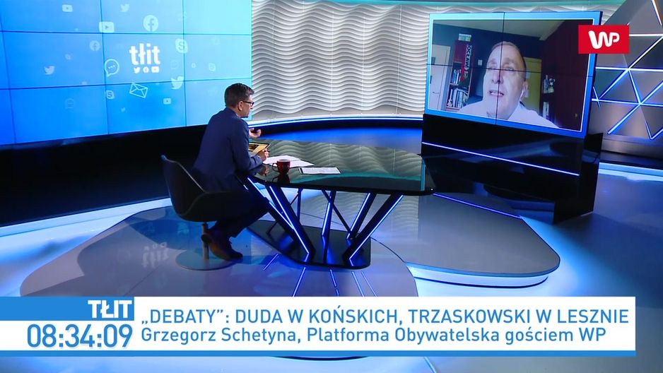 - Andrzej Duda nie chciał otwartej debaty, jaka zawsze miała miejsce zawsze przed drugą turą wyborów prezydenckich. Rafał Trzaskowski zrobił pierwszy gest: był na debacie w Telewizji Polskiej, która nie była równa i obecny prezydent był w niej faworyzowany. To był poważny gest - powiedział w programie "Tłit" WP Grzegorz Schetyna, pytany o odmowę przyjazdu Trzaskowskiego na debatę TVP w Końskich i zaproszenie mediów na debatę w Lesznie. - To będą dwie równoległe debaty - mówił Schetyna. - Źle się stało, że nie było zgody Andrzeja Dudy na ogólną debatę. To, co się stało później, było efektem tej odmowy - komentował gość Marka Kacprzaka. - Wybory wygrywa się w regionach i małych miejscowościach. (…) Uważam, że wygramy wybory w "Polsce powiatowej" - ocenił Grzegorz Schetyna.