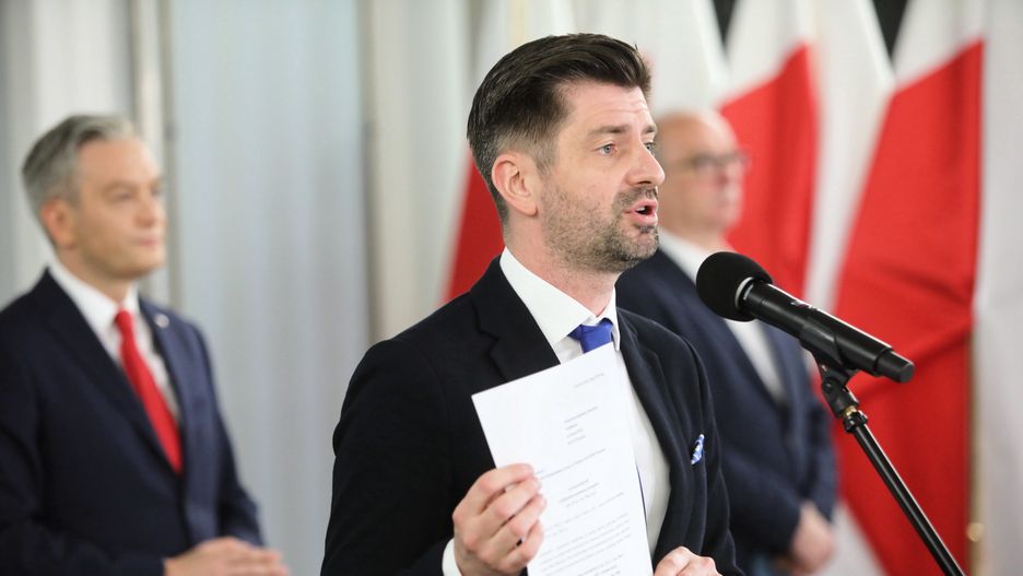 - Wraz z Maciejem Koniecznym oraz Andrzejem Szejną w imieniu Lewicy składamy zawiadomienie do prokuratury o możliwości popełnienia przestępstwa przez pana premiera Morawieckiego oraz pana wicepremiera Jacka Sasina - ogłosił Krzysztof Śmiszek.