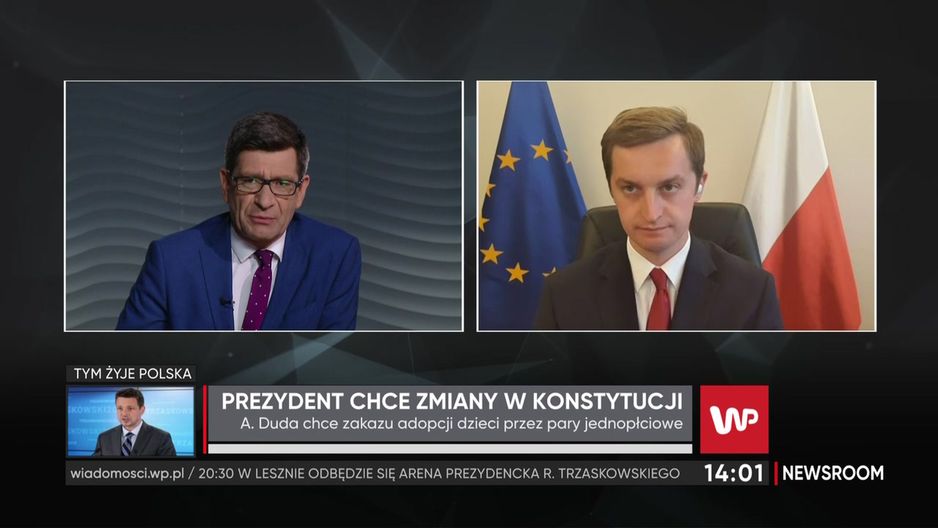 Gościem programu WP "Newsroom" był Sebastian Kaleta. Wiceminister sprawiedliwości poproszony został o odniesienie się do cytatu Cezarego Tomczyka: "Jesteśmy przeciwni możliwości adoptowania dzieci przez pary jednopłciowe. To jest nasze ostateczne zdanie w tej sprawie". – Rozumiem, że oznacza to, iż pan Cezary Tomczyk zagłosuje za zmianą konstytucji, którą zaproponował prezydent Andrzej Duda – powiedział. Zapytany o to, dlaczego prezydent zajmuje się tematem adoptowania dzieci przez pary jednopłciowe, a nie najważniejszymi sprawami dla Polaków, jak chociażby służba zdrowia zaznaczył, że prezydent w ostatnich latach dla służby zdrowia zrobił bardzo dużo. – Dzięki bardzo dobrej współpracy z rządem finansowanie służby zdrowia wzrosło w ostatnich latach o kilkadziesiąt procent, a w kwotach bezwzględnych jest to ponad trzydzieści miliardów złotych – zaznaczył. Zdaniem polityka Rafał Trzaskowski obiecuje "prozaiczne", jeśli chodzi o skalę sprawy.