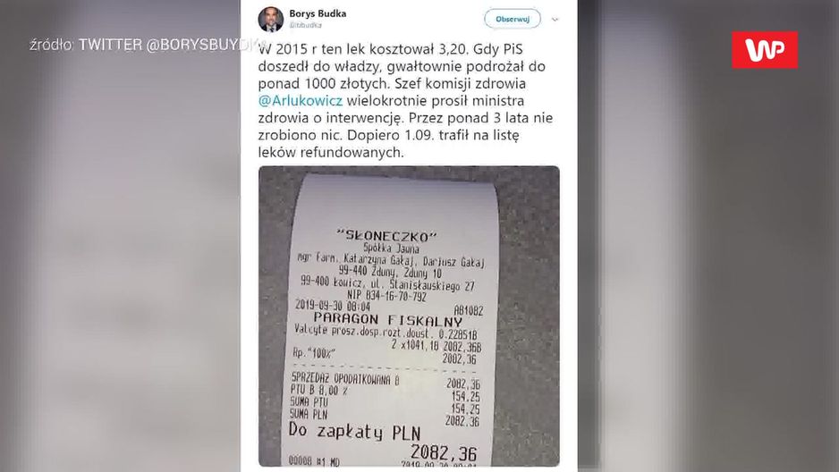 Debata w TVP poprzedziła wybory parlamentarne 2019. Borys Budka pokazał w studiu horrendalny paragon za lek onkologiczny dla dzieci. Jak się okazało, jest on refundowany, ale nie wszystkim. Jego klubowy kolega Cezary Tomczyk wyjaśnił kontrowersje związane z paragonem.