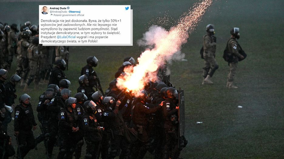 Prezydent Andrzej Duda reaguje na napiętą sytuację w Brazylii, gdzie w niedzielę wybuchły zamieszki. "Prezydent Lula wygrał i ma poparcie demokratycznego świata, w tym Polski!" - zapewnił na Twitterze.