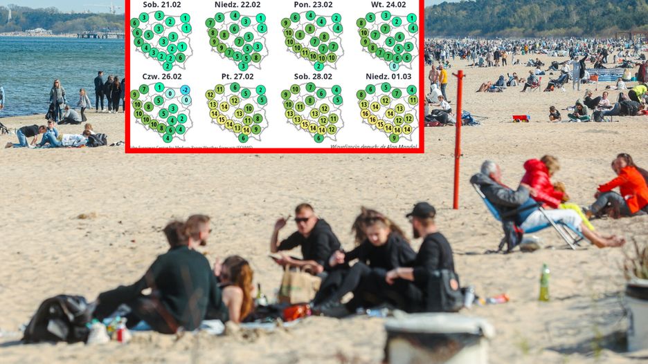 Prawdziwa eksplozja ciepła czeka nas jednak w ostatni weekend lutego i pierwszy dzień marca. Modele numeryczne świecą się na żółto i pomarańczowo, co zwiastuje temperatury, jakich nie powstydziłby się kwiecień.