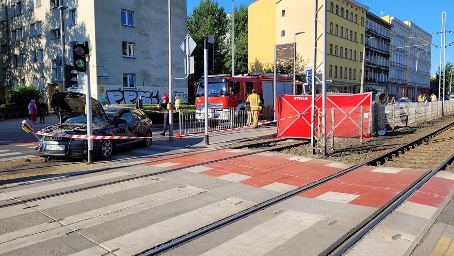 Wypadek miał miejsce ok. 6:30 w rejonie skrzyżowania ulicy Grabiszyńskiej i Kolejowej. Jak informuje policja w kierunku centrum jechały dwa pojazdy - bmw i audi.