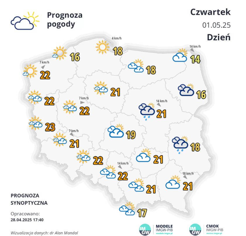 - 1 maja na południowym zachodzie Polski termometry mogą pokazać nawet 24 stopnie Celsjusza.