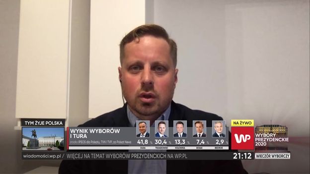 - Widzimy aż dwupunktową przewagę Rafała Trzaskowskiego nad Andrzejem Dudą - podkreślił w "Wieczorze wyborczym" WP Marcin Duma z IBRiS. Instytut przygotował dla WP sondaż dotyczący wyników wyborów w II turze. Z badania wynika, że Rafał Trzaskowski uzyskałby 48,1 proc. głosów, a Andrzej Duda 45,8 proc. Duma zauważył, że dużą rolę odgrywa przewaga wypracowana przez Trzaskowskiego jeszcze przed poznaniem wyników I tury. - Zatem należy spodziewać się efektu bardzo dobrego wyniku prezydenta stolicy i jednak wyniku poniżej oczekiwań Andrzeja Dudy - uznał ekspert. Jego zdaniem po wynikach exit poll możemy spodziewać się wzrostu poparcia dla Rafała Trzaskowskiego i "w miarę stabilnej pozycji Dudy". Duma uważa, że wyborcy Władysława Kosiniaka-Kamysza i Krzysztofa Bosaka "będą prawdopodobnie decydować o tym, kto zostanie prezydentem na kolejne 5 lat".