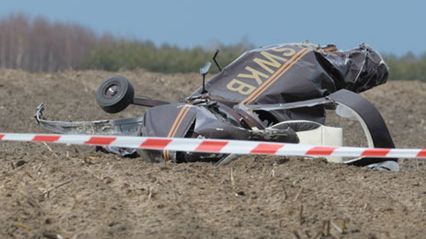 Mężczyzna lecący ultralekkim, jednoosobowym samolotem zginął po tym, jak maszyna spadła na pole. Maszyna jest całkowicie rozbita.