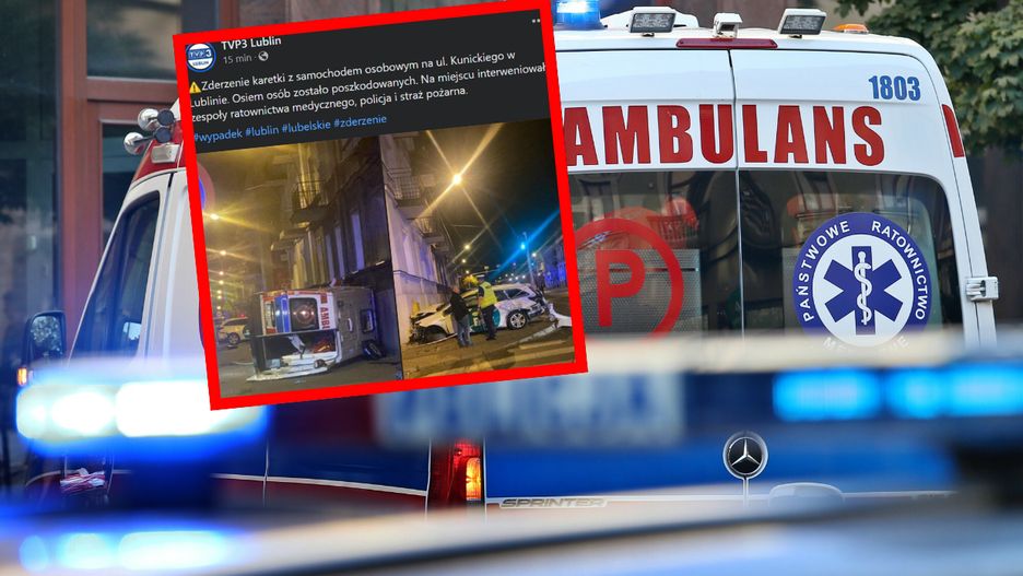 Osiem osób zostało rannych w zderzeniu samochodu osobowego z karetką pogotowia w Lublinie. Do wypadku doszło na ul. Kunickiego. Na miejscu pracowały służby ratunkowe.