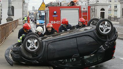 Dachowanie na moście w Warszawie - zobacz zdjęcia