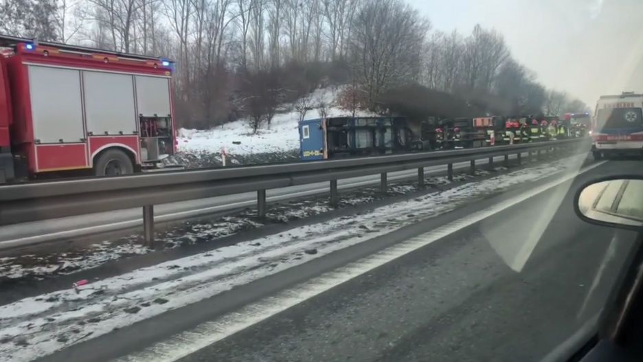 Do wypadku doszło ok. godz. 13. Kierowca ciężarówki został przetransportowany do szpitala. Wypadek praktycznie sparaliżował ruch na obwodnicy. Utrudnienia mogą potrwać nawet do godz. 18.