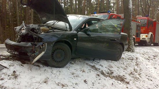 Kierująca audi a4 20-latka wpadła w poślizg i uderzyła w drzewo w Dzikowie w woj. opolskim.