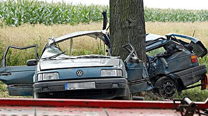 W niedzielę nad ranem kierujący samochodem vw passat zjechał z drogi i uderzył w drzewo. Do zdarzenia doszło przy ulicy Przelotowej w Bujakowie (droga wojewódzka nr 925) - dzielnicy Mikołowa. Pojazd został niemal całkowicie zniszczony i "owinął" się wokół drzewa