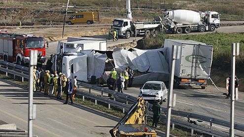 W wyniku wypadku na trasie S1 w Mysłowicach tir naruszył konstrukcję budowanego wiaduktu