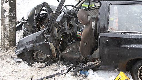Kierowca nie dostosował prędkości do warunków drogowych i dlatego stracił panowanie nad pojazdem.
