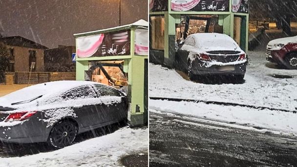 Spadł pierwszy śnieg w Polsce, a co za tym idzie warunki na drogach zrobiły się trudne. Przekonał się o tym kierowca opla z Żor na Śląsku, który nocną porą wypadł z ronda i uderzył w witrynę pobliskiego sklepu. Kamera monitoringu nagrała moment wypadku. Tamtego wieczoru mocno padał śnieg, a na drodze leżało sporo śniegu. Kierujący osobówką zbyt szybko chciał przejechać przez skrzyżowanie, przez co stracił panowanie nad pojazdem i swoją jazdę zakończył w sklepie. Według policji mężczyzna był trzeźwy. Za to, co zrobił otrzymał jednak potężny mandat. "Zapomniał o tym 33-letni kierowca, który dzisiejszej nocy około 1.30 wraz z pasażerką przejechał na wprost przez rondo litewskie, a następnie utracił panowanie nad oplem insignią i uderzył w przydrożny sklep, wjeżdżając do środka przez witrynę. Choć w wyniku zderzenia samochód został uszkodzony tam poważnie, że nie nadawał się do dalszej jazdy, nikomu nic groźnego się nie stało. Kierujący był trzeźwy. Za spowodowanie zagrożenia w ruchu drogowym, został on ukarany mandatem w wysokości 1500 złotych i 10 punktami karnymi" - poinformowała policja.
