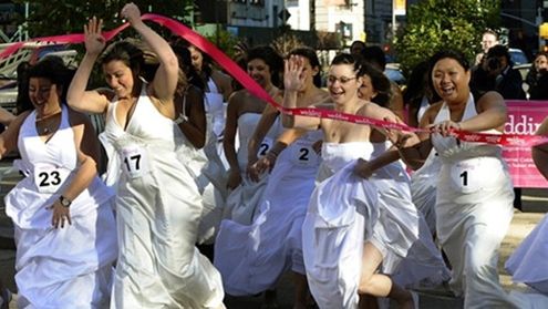 Kobiety by spełnić swoje marzenia o idealnej ceremonii ślubnej gotowe były biec w niezbyt wygodnych sukniach ślubnych.