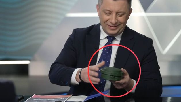 Były wiceminister obrony narodowej europoseł Michał Dworczyk przyszedł w środę do studia Wirtualnej Polski z nietypowym rekwizytem. - To jest niewielki środek bojowy, ale jest niezwykły - stwierdził, wyjmując na stół atrapę ukraińskiej miny przeciwpiechotną. - Ale nie będzie jej pan odpalał? - zareagował Michał Wróblewski, prowadzący program "Tłit".
