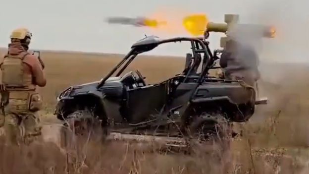 Ukraińcy kolejny raz zadali bolesny cios Rosjanom pod Bachmutem. Tym razem do sieci trafiło nagranie, na którym widać, jak obrońca Kijowa celuje w rosyjski cel z ulepszonego radzieckiego systemu przeciwpancernego 9K111 Fagot. Ten rodzaj broni składa się z półautomatycznego układu kierowania przeznaczonego do zwalczania nieruchomych i ruchomych czołgów oraz innych pojazdów opancerzonych znajdujących się w odległości do 2,5 km. Ukraińcy zastosowali w tym wypadku sprytne rozwiązanie, ponieważ 9K111 Fagot został zamontowany na naczepie terenowego pojazdu typu buggy. Dzięki temu, żołnierze Zełenskiego mogą łatwo przemieszczać się na polu bitwy, a dzięki niezwykle zwinnej maszynie, automatycznie stają się trudno uchwytnym celem dla oddziałów wroga. Ukrainiec wystrzelił tylko jeden pocisk, który rozerwał na strzępy stojący w krzakach rosyjski czołg T-72 wraz z jego załogą.