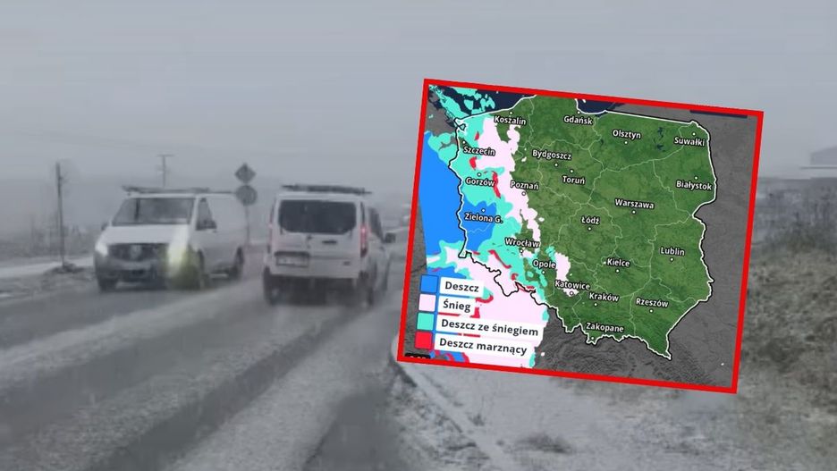 Śnieg i śnieg z deszczem nadciągnęły do Polski z zachodu. - Uwaga na trudne warunki na drogach - ostrzega Grzegorz Walijewski z IMGW. W internecie pojawia się coraz więcej nagrań białych ulic.