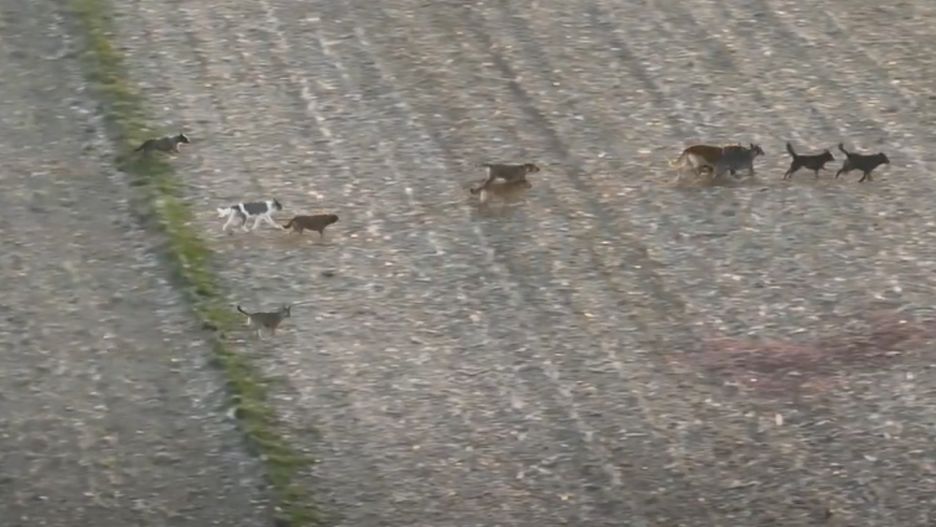 "Nie chodzi o kilka domowych piesków, tylko kilkanaście groźnych dużych dzikich psów, które nigdy nie był udomowione. Psy te przemieszczają się po terenach trzech gmin wiejskich, po polach, lasach, między gminami (nie w mieście). Zagrożone są dzieci idące polnymi drogami na przystanki autobusowe i osoby starsze. Dzika sfora zbliżała się do mieszkańców i nieogrodzonych placów zabaw oraz zabudowań" - piszą władze gminy Wolbórz w województwie łódzkim, publikując na stronie film z drona, który uchwycił "watahę groźnych, dzikich psów".