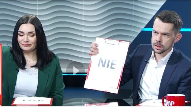 W programie "Tłit" Wirtualnej Polski prezeska Porozumienia Magdalena Sroka oraz lider AgroUnii Michał Kołodziejczak rozmawiali o nowej wspólnej partii. Politycy potwierdzili, że mają już nazwę dla tej formacji, ale nie chcą jej jeszcze zdradzać. - Musimy się jeszcze chwilę wstrzymać. Nazwę ujawnimy w kolejnym etapie - oświadczył lider AgroUnii. - Mamy pomysł, jak przywrócić wiarę w ludzi, że w Polsce może być inaczej - kontynuował. Magdalena Sroka oraz Michał Kołodziejczak wzięli również udział w teście zgodności Porozumienia oraz AgroUnii. Zadaniem polityków było w tym samym czasie odpowiedzieć: tak lub nie na tezy bądź pytania Patryka Michalskiego. "W walce o moje postulaty jestem gotowy/gotowa palić opony i wysypać zboże podczas protestów". Goście WP podnieśli tabliczki "nie". Lider AgroUnii wytłumaczył, że jego formacja paliła niegdyś opony, ale nie wysypywała zboża. - Dziś nie planujemy takich rzeczy - zapewniał rozmówca Patryka Michalskiego. Politycy nie chcieli jednak odpowiedzieć na pytanie, czy program 500+ powinien zostać zwaloryzowany do 700 zł. Wspólnie stwierdzili, że na to nie da się odpowiedzieć: tak lub nie. Kolejną tezą przytoczoną przez dziennikarza WP było: "Jestem za liberalizacją prawa aborcyjnego i uważam, ze aborcja do 12. tygodnia ciąży powinna być wyłącznie decyzją kobiety". Magdalena Sroka podniosła tabliczkę z odpowiedzią nie. Kołodziejczak zabrał z kolei głos. - To nie są pytania, aby odpowiadać w taki sposób. Ja nie będę politykiem ludzkich sumień. Nie będę łamał nikomu kręgosłupów. Jesteśmy przed ważną rozmową na ten temat - wskazał lider AgroUnii. Dopytywany o konkretną odpowiedź polityk podniósł tabliczkę z napisem "nie". Kolejnym pytaniem Patryka Michalskiego było, czy nowa partia wyrazi zgodę na związki partnerskie, także osób tej samej płci. - Związki partnerskie w mojej ocenie powinny zostać uporządkowane. Natomiast dla mnie rodzina jest podstawową komórką, a tworzy ją kobieta i mężczyzna - stwierdziła szefowa Porozumienia i dodała, że regulacje prawne muszą w tej sprawie zostać potwierdzone. - Ale nie mamy konkretnej ustawy, o której rozmawiamy - podkreśliła posłanka. Kolejne pytanie dotyczyło tego, czy najbogatsi powinni płacić większe podatki. Magdalena Sroka odpowiedziała, że nie. Z kolei Kołodziejczak unikał odpowiedzi. Zapowiedział rozmowy na ten temat w nowej formacji. Zgodnie politycy odpowiedzieli na ostatnie pytanie. Stwierdzili, że kategorycznie wykluczają współpracę z PiS-em.