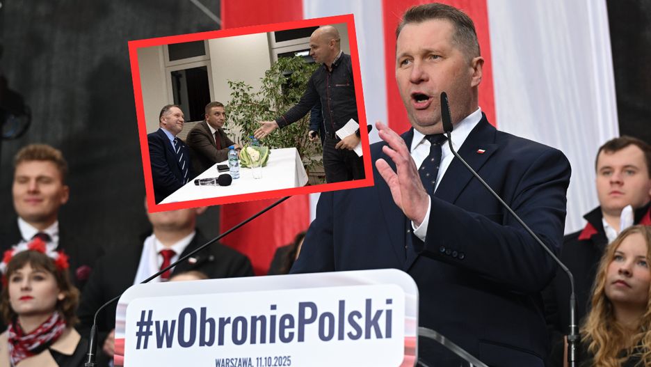Czarnek przytakiwał działaczowi Konfederacji. Wcześniej otrzymał kalafiora