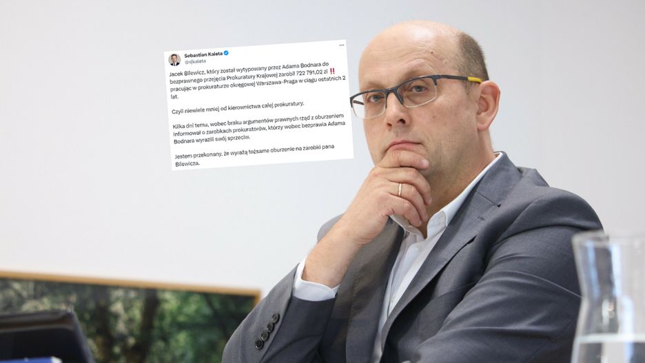 "Jacek Bilewicz, który został wytypowany przez Adama Bodnara do bezprawnego przejęcia Prokuratury Krajowej zarobił 722 791,02 zł, pracując w prokuraturze okręgowej Warszawa-Praga w ciągu ostatnich 2 lat" - poinformował w serwisie X Sebastian Kaleta.