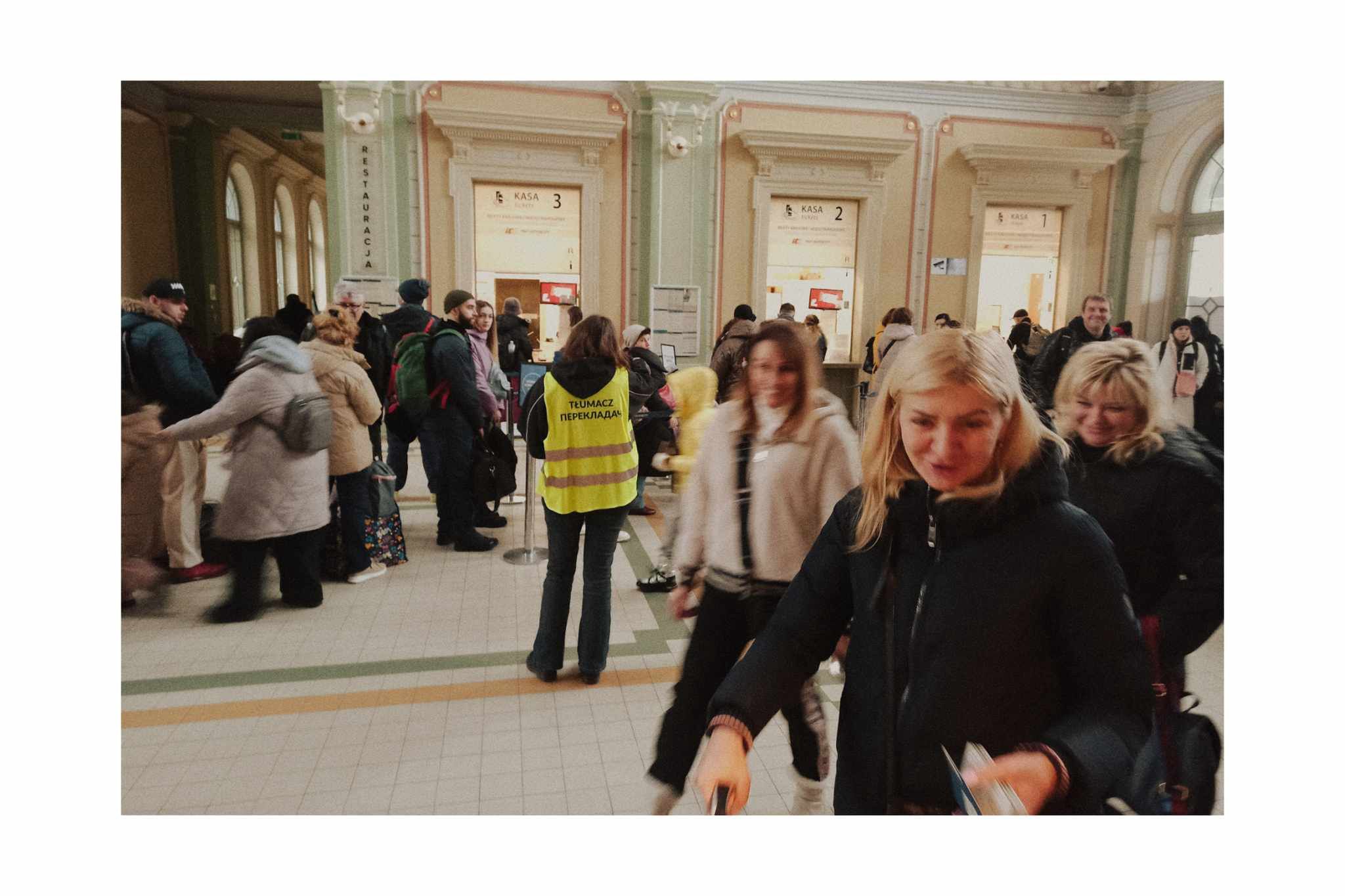 Dworzec w Przemyślu był dla wielu uchodźców pierwszym doświadczeniem związanym z Polską. Czekała ich tutaj nie tylko gorąca zupa, ale i sztab wolontariuszy, którzy odpowiadali na istniejące potrzeby. Ktoś chciał zapytać, jak wyrobić PESEL, ktoś inny potrzebował noclegu. Zmęczona matka szukała miejsca, żeby przewinąć dziecko, a wystraszony nastolatek chciał po prostu podładować telefon. Szczęście, że znaleźli się właśnie tutaj, na przemyskim dworcu, gdzie czekał i wciąż czeka na nich ktoś gotowy pomóc. – Nasza baza wolontariuszy na dzisiaj, czyli baza osób, które przetoczyły się przez system wolontariacki Domu Ukraińskiego, liczy 980 nazwisk. Kryterium głównym była znajomość języka ukraińskiego – tłumaczy Szachmat. – Bywało, że w ciągu jednej doby w terenie mieliśmy zaangażowanych 120 osób. To było w szczytowym momencie, kiedy przyjechało najwięcej osób.