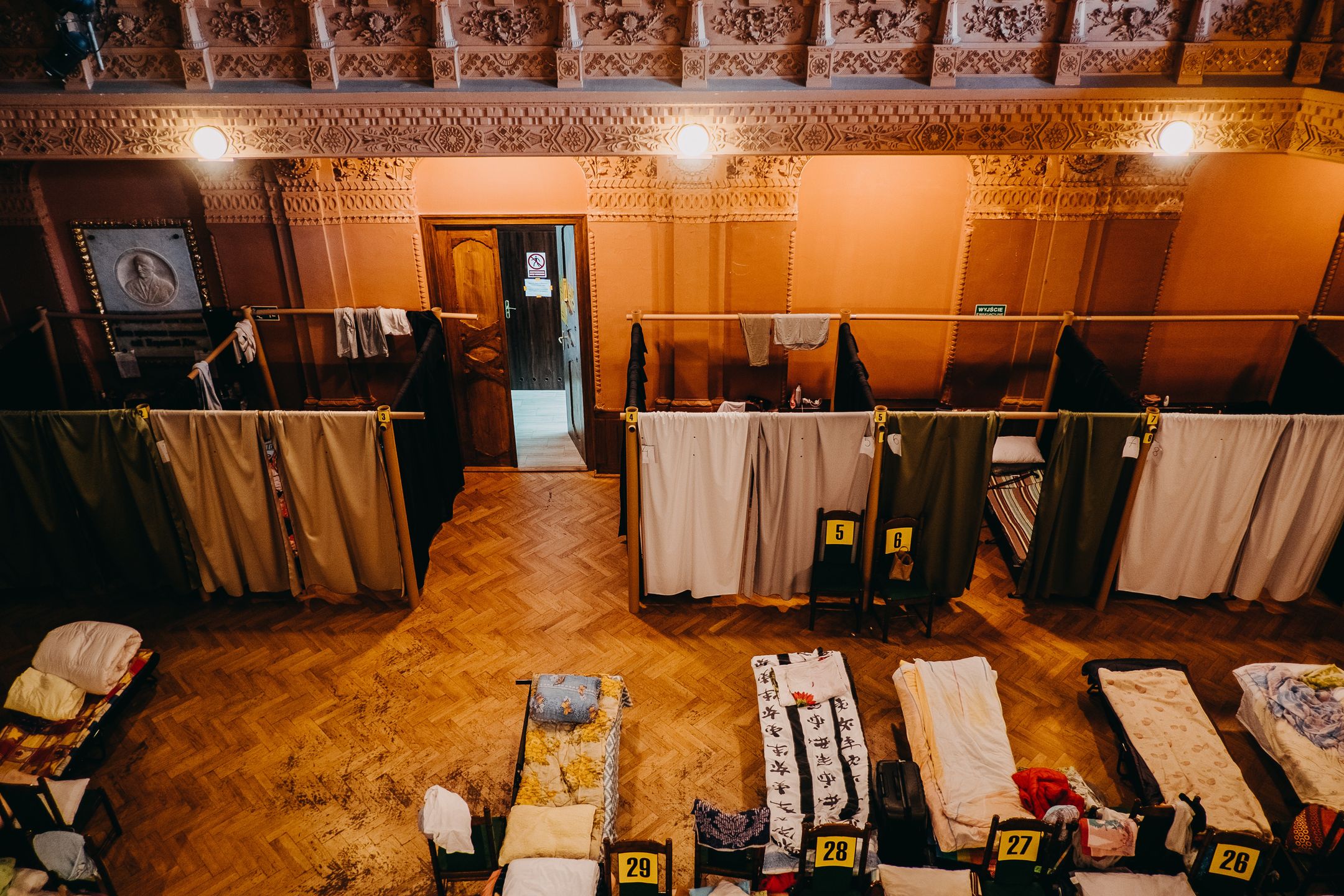 – W momencie kiedy dowiedzieliśmy się o zagrożeniu, jakim jest wojna, zadaliśmy sobie pytanie o to, co zrobimy jako Dom Ukraiński w Przemyślu z naszym potencjałem, bo wolontariuszy mieliśmy już wcześniej. Postanowiliśmy, że otworzymy hostel – opowiada Michał Szachmat. – Na początku mieliśmy 80 łóżek w sali teatralnej razem ze sceną, później postawiliśmy pokoiki z materiałów niepalnych dla zachowania minimalnej intymności. Mimo że był to dla nas bardzo tragiczny czas, to był też okres, kiedy Dom Ukraiński zaczął bardzo mocno żyć, naprawdę stał się domem. Nawet przebywający krócej mogli się zadomowić. Mieliśmy osobę, która na przykład mówiła: "Zawsze chciałam być na scenie, ale nie w roli uchodźczyni". Z noclegu korzystała też baletnica z Odessy, która tańczyła między łóżkami. Jeden chłopak codziennie rano stawał na korytarzu i grał hymn Ukrainy. To dla nas było bardzo mocne przeżycie.