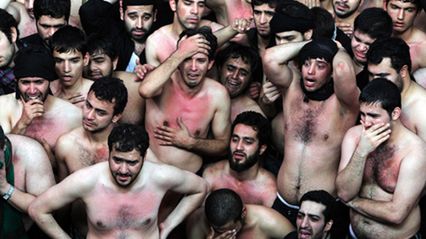Irańscy muzułmanie przyglądają się krwawym obrzędom w meczecie Kerbala w Teheranie.