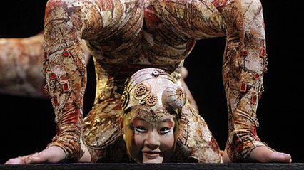 Występ gimnastyczki ze słynnego Cirque du Soleil podczas przygotowań do show na placu Puerta del Angel w Madrycie.