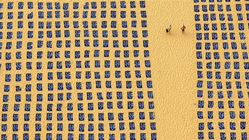Widok na część z 1700 ręczników ułożonych na plaży Bondi. Akcja miała na celu zwrócenie uwagi na wzrost liczby zgonów z powodu raka skóry.