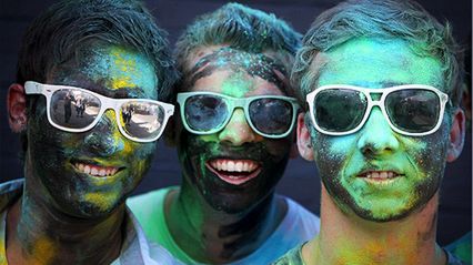 Uczestnicy imprezy z okazji święta Holi. Holi to festiwal wiosenny, obchodzony przez Hindusów w wielu krajach, podczas którego uczestnicy obsypują się wzajemnie kolorowymi proszkami.