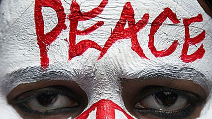 Indyjski student podczas wiecu pokojowego Hiroshima Day w Bombaju. Studenci i działacze społeczni przeszli ulicami miasta, aby uczcić pamięć tysięcy ofiar bomby atomowej zrzuconej przed 69 laty na japońską Hiroszimę przez Amerykanów.