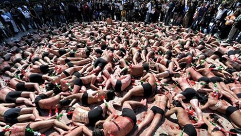 Aktywiści organizacji Anima Naturalis podczas protestu przeciwko walkom z bykami.